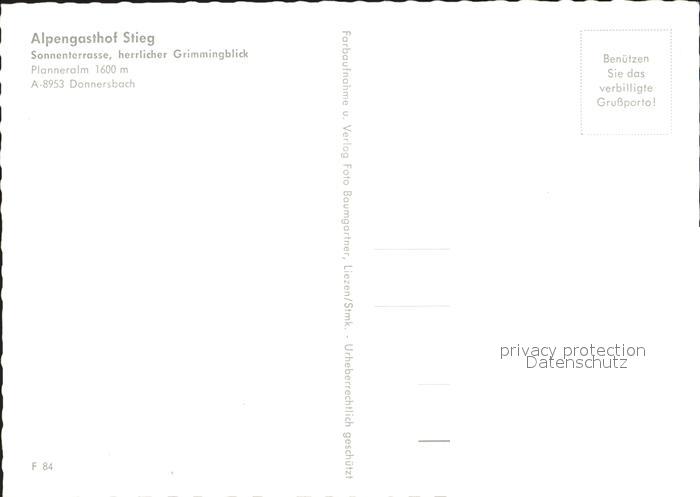 72262000 Donnersbach Alpengasthof Stieg Planneralm postalisch nicht gelaufen Erhaltung siehe scans KatCode: 11390222061208