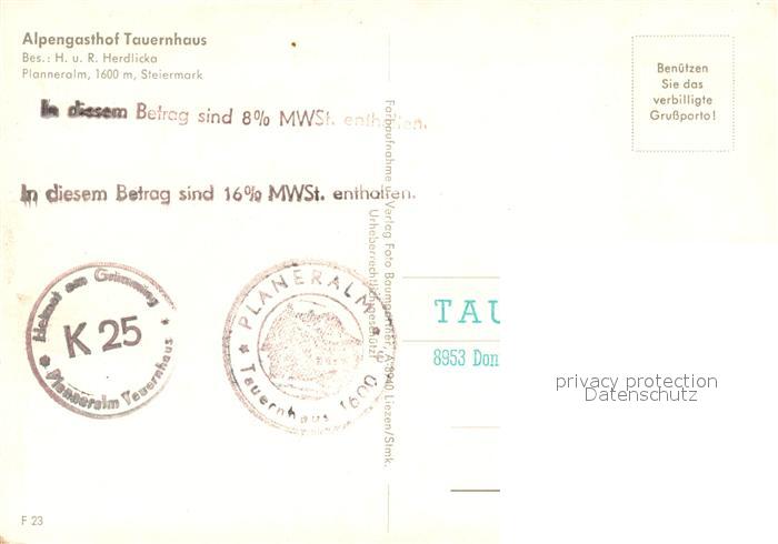 73588151 Donnersbach Alpengasthof Tauernhaus Planneralm postalisch nicht gelaufen Erhaltung siehe scans [FriedD77] KatCode: 11390222061208