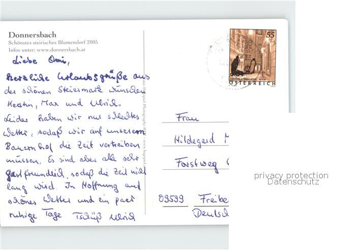 72360926 alte Postkarte Donnersbach Blumendorf postalisch gelaufen Erhaltung siehe scans KatCode: 11390222061208