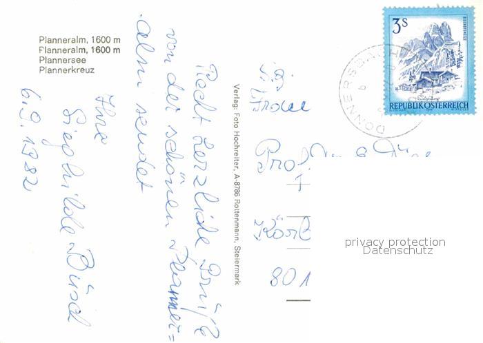 72773511 alte Postkarte Donnersbach Planneralm Plannersee Bergsee Gipfelkreuz Alpenpanorama postalisch gelaufen Erhaltung siehe scans [FriedD77] KatCode: 11390222061208