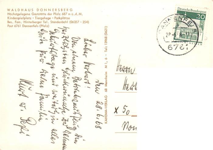 73877328 alte Postkarte Donnersberg Pfalz Waldhaus Donnersberg Gastraeume postalisch gelaufen Erhaltung siehe scans [WerneD78] KatCode: 11110007333013