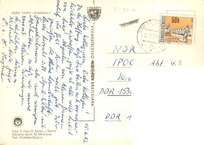 73907839 old postcard Donovaly Nizke Tatry Slovakia Panorama Sporthotel Donovaly postalisch gelaufen Erhaltung siehe scans [FriedD77] KatCode: 11490