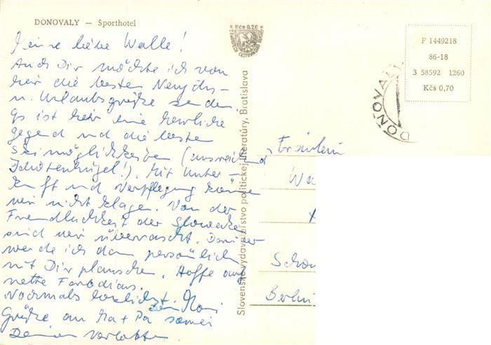 old postcard Donovaly Nizke Tatry Slovakia Sporthotel postalisch gelaufen Erhaltung siehe scans [FriedD77]
