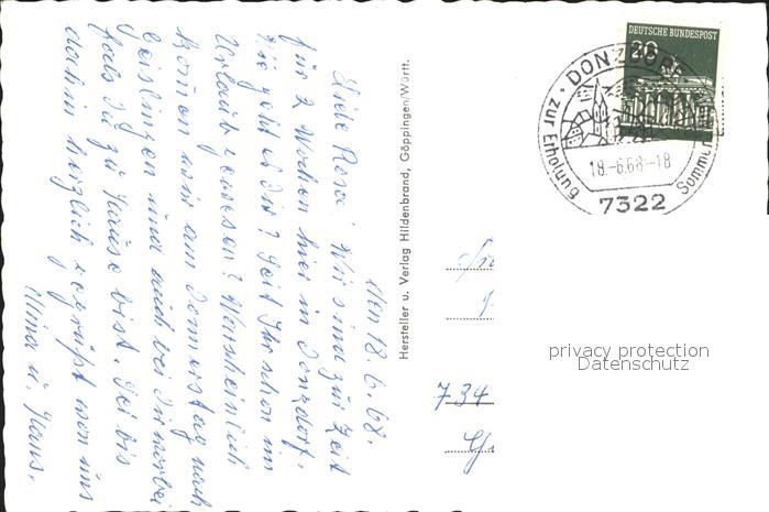 31850078 alte Postkarte Donzdorf Fliegeraufnahme postalisch gelaufen Erhaltung siehe scans KatCode: 11110008117015