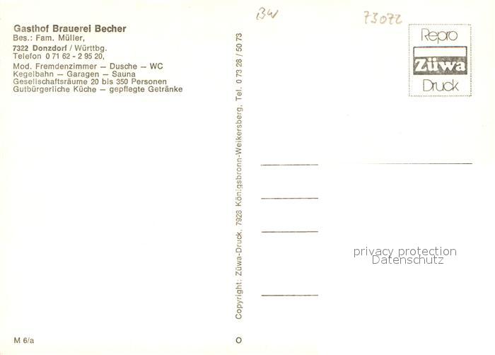 73648851 Donzdorf Gasthof Brauerei Becher Restaurant postalisch nicht gelaufen Erhaltung siehe scans [FriedD77] KatCode: 11110008117015