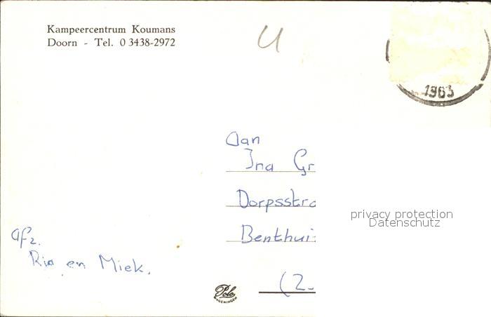 alte Postkarte Doorn Niederlande Kampeercentrum Koumans postalisch gelaufen Erhaltung siehe scans