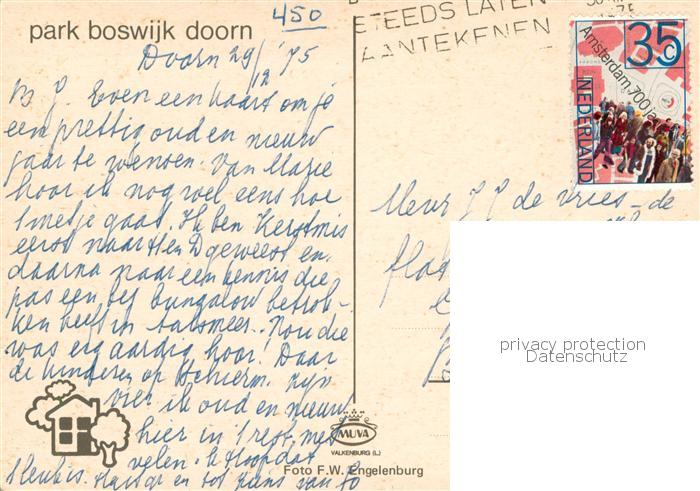 old postcard Doorn Niederlande Park Boswijk postalisch gelaufen Erhaltung siehe scans [WerneD78]