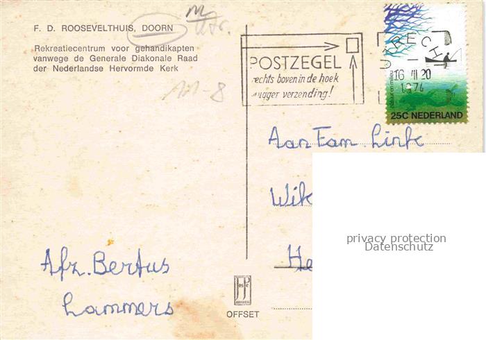 74155970 old postcard Doorn Utrechtse Heuvelrug Utrecht NL Franklin D Roosevelthuis postalisch gelaufen Erhaltung siehe scans [WerneD78] KatCode: 11370