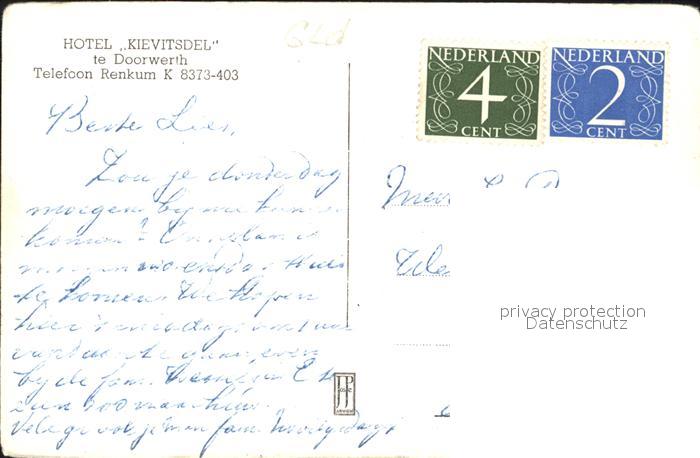 Doorwerth Hotel Kievitsdel Terrasse postalisch nicht gelaufen Erhaltung siehe scans