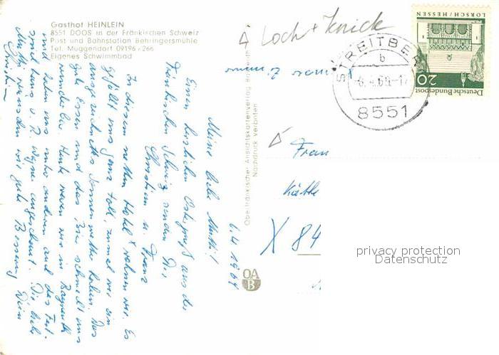 72642529 alte Postkarte Doos Forchheim Gasthof Heinlein postalisch gelaufen Erhaltung siehe scans [WerneD78] KatCode: 11110009474126
