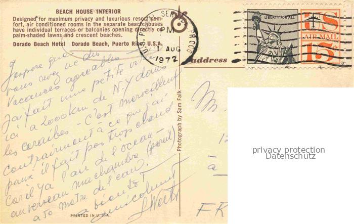 74156104 old postcard Dorado Beach Puerto Rico USA Dorado Beach Hotel Beach House interior postalisch gelaufen Erhaltung siehe scans [FriedD77] KatCode: 14140