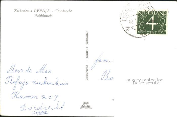 old postcard Dordrecht Ziekenhuis Refaja Poliklintek postalisch gelaufen Erhaltung siehe scans