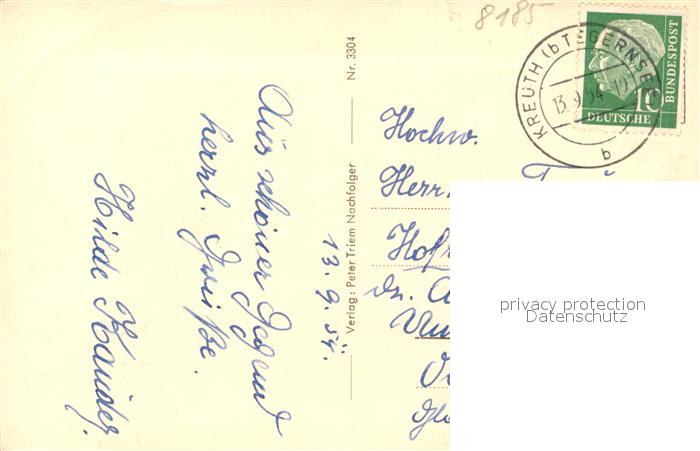43496295 alte Postkarte Dorf Kreuth Ortsmotiv mit Maibaum Blick zum Leonhardstein postalisch gelaufen Erhaltung siehe scans [FriedD77] KatCode: 11110009182124
