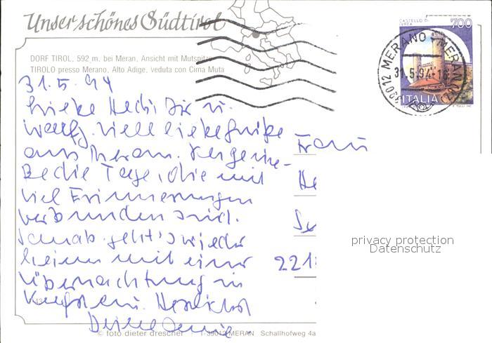 old postcard Dorf Tirol Ansicht mit Mutspitze Texelgruppe postalisch gelaufen Erhaltung siehe scans