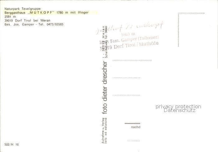 Dorf Tirol Berggasthaus Mutkopf Ilfinger Naturpark Texelgruppe postalisch nicht gelaufen Erhaltung siehe scans