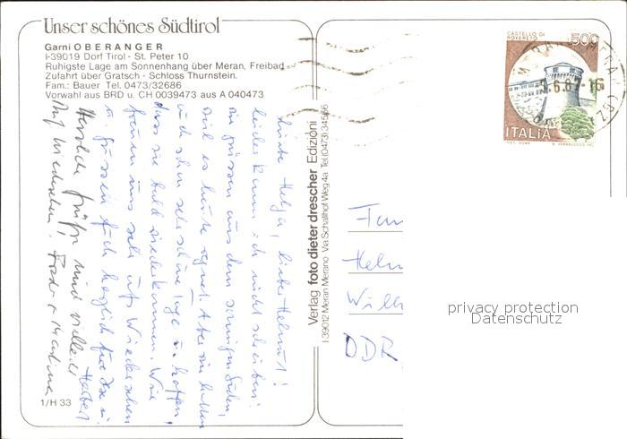 old postcard Dorf Tirol Garni Oberanger postalisch gelaufen Erhaltung siehe scans