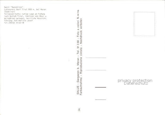 Dorf Tirol Garni Sonnblock postalisch nicht gelaufen Erhaltung siehe scans