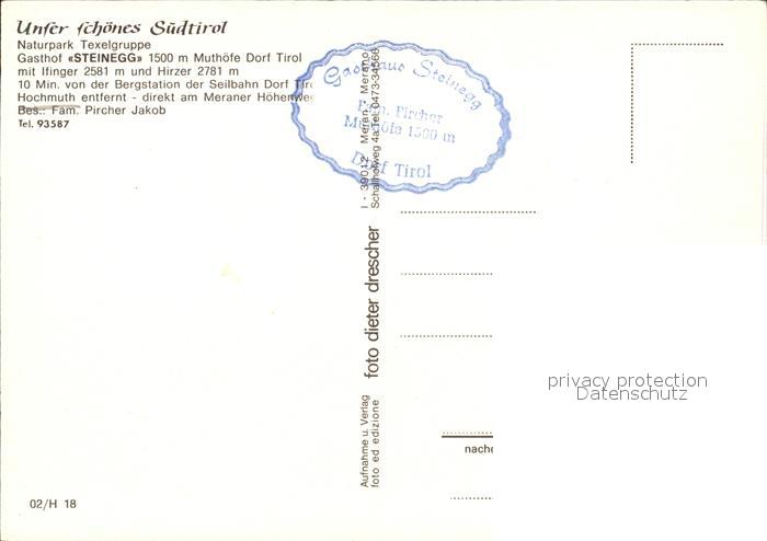 Dorf Tirol Gasthof Steinegg Muthoefe postalisch nicht gelaufen Erhaltung siehe scans