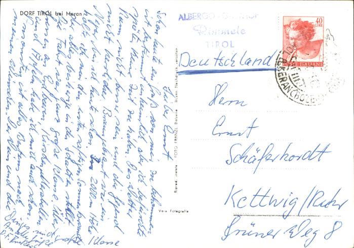 old postcard Dorf Tirol Gesamtansicht Vinschgau postalisch gelaufen Erhaltung siehe scans