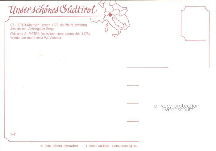 Dorf Tirol Kirche St. Peter Vinschgauer Berge postalisch nicht gelaufen Erhaltung siehe scans