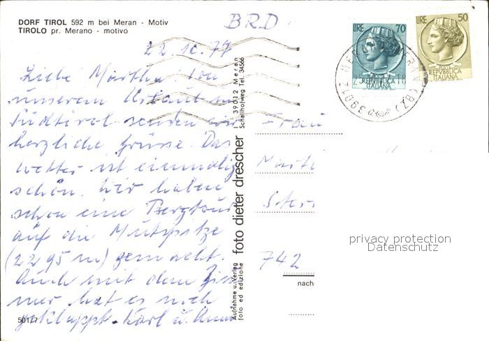 old postcard Dorf Tirol Motiv Tirolo postalisch gelaufen Erhaltung siehe scans