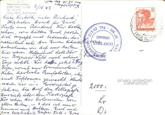 old postcard Dorf Tirol Naturfreunde Haus Terrasse postalisch gelaufen Erhaltung siehe scans
