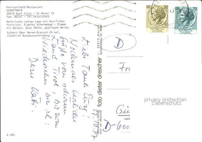 old postcard Dorf Tirol Pension Cafe Restaurant Schattmair Alpenblick postalisch gelaufen Erhaltung siehe scans