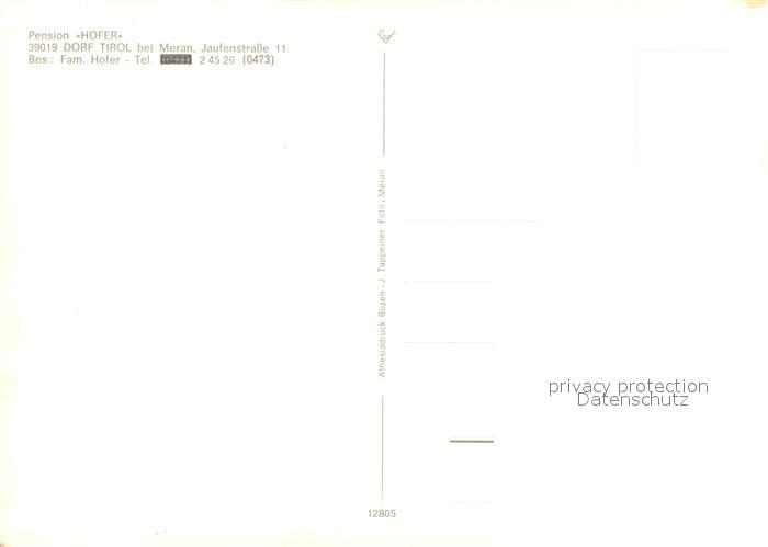 Dorf Tirol Pension Hofer postalisch nicht gelaufen Erhaltung siehe scans [PaolaD17]