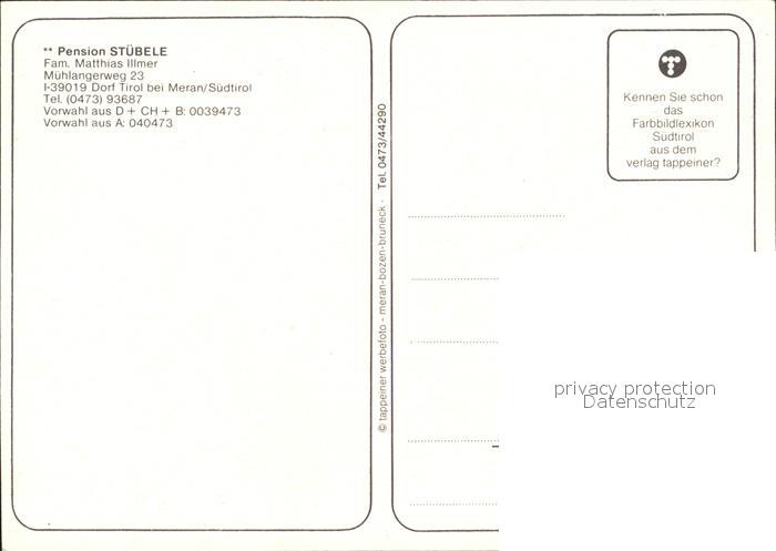Dorf Tirol Pension Stuebele postalisch nicht gelaufen Erhaltung siehe scans