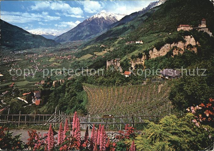 old postcard Dorf Tirol Schlossweg Promenade Schloss Brunnenweg postalisch gelaufen Erhaltung siehe scans [AndreD76 kv012box]