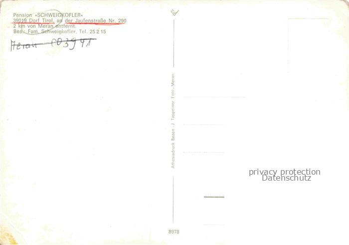 74156169 Dorf-Tirol Suedtirol IT Pension Schweigkofler Swimming Pool postalisch nicht gelaufen Erhaltung siehe scans [FriedD77] KatCode: 11240