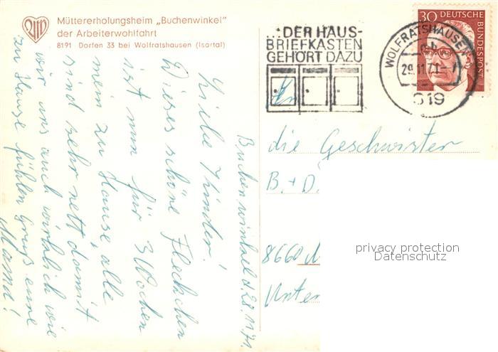 73646081 alte Postkarte Dorfen Wolfratshausen Muettererholungsheim Buchenwinkel der AWO postalisch gelaufen Erhaltung siehe scans [WerneD78] KatCode: 11110009173130
