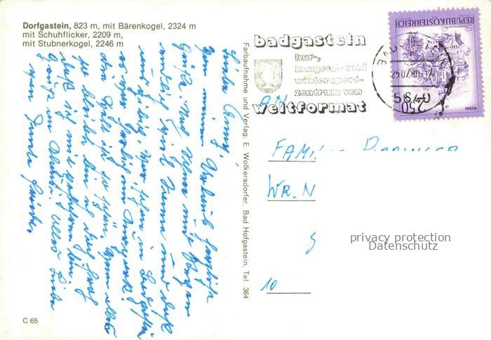 74138870 alte Postkarte Dorfgastein Pinzgau-Pongau Salzburg AT mit Baerenkogel Schuhflicker und Stubnerkogel postalisch gelaufen Erhaltung siehe scans [WerneD78] KatCode: 11390322050405