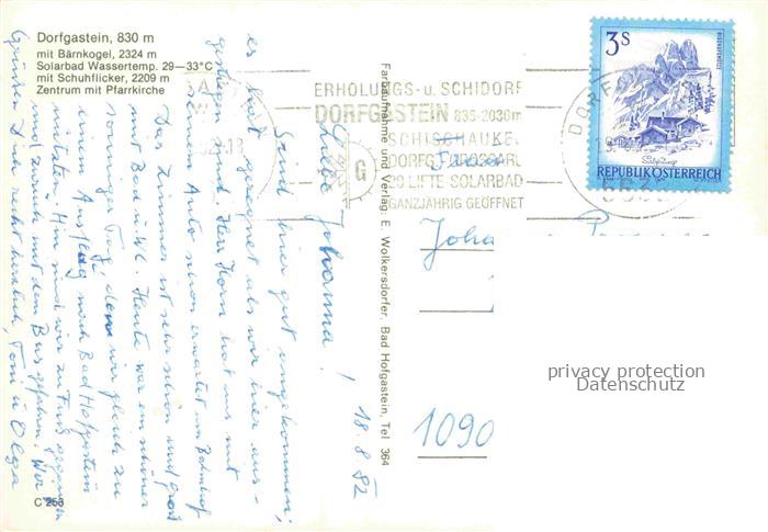 74138872 alte Postkarte Dorfgastein Pinzgau-Pongau Salzburg AT Panorama mit Baernkogel Solarbad Schuhflicker Stadtkirche postalisch gelaufen Erhaltung siehe scans [WerneD78] KatCode: 11390322050405
