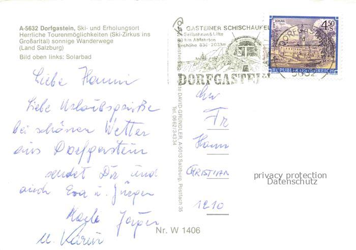 74138871 alte Postkarte Dorfgastein Pinzgau-Pongau Salzburg AT Solarbad Panorama Seilbahn Pferdeschlittenfahrt postalisch gelaufen Erhaltung siehe scans [WerneD78] KatCode: 11390322050405