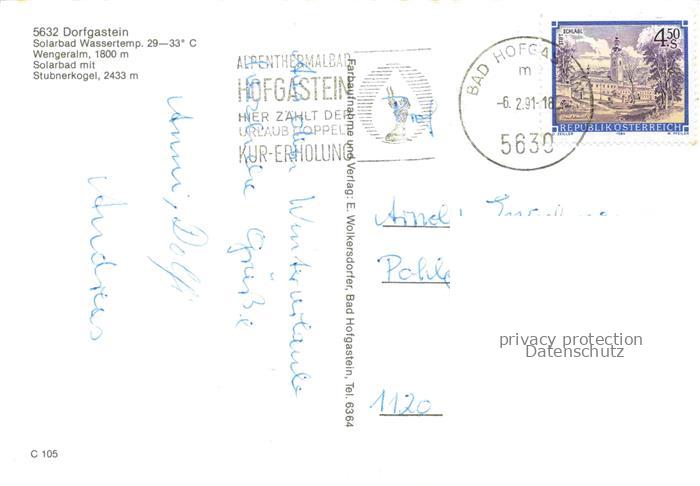 74138873 alte Postkarte Dorfgastein Pinzgau-Pongau Salzburg AT Solarbad Wengeralm Stubenerkogel Panorama postalisch gelaufen Erhaltung siehe scans [WerneD78] KatCode: 11390322050405