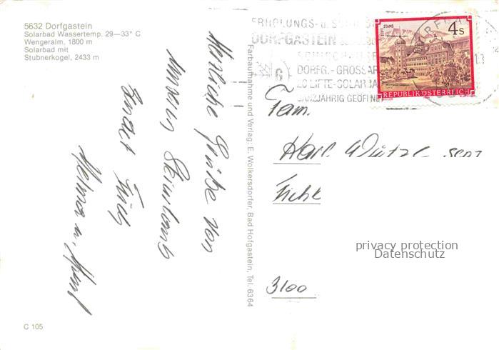 74138874 alte Postkarte Dorfgastein Pinzgau-Pongau Salzburg AT Solarbad Wengeralm Stubenerkogel Panorama postalisch gelaufen Erhaltung siehe scans [WerneD78] KatCode: 11390322050405