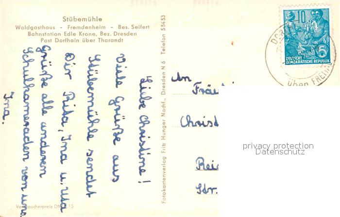 32731044 alte Postkarte Dorfhain Stuebemuehle Waldgasthaus postalisch gelaufen Erhaltung siehe scans [WerneD78] KatCode: 11110014290100