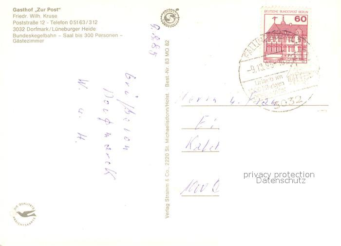 73717336 alte Postkarte Dorfmark Gasthof Zur Post Gaststube Bar Veranstaltungssaal postalisch gelaufen Erhaltung siehe scans [WerneD78] KatCode: 11110003358008