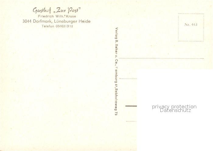 73569198 Dorfmark Gasthof Zur Post Kegelbahn Lueneburger Heide postalisch nicht gelaufen Erhaltung siehe scans [FriedD77] KatCode: 11110003358008