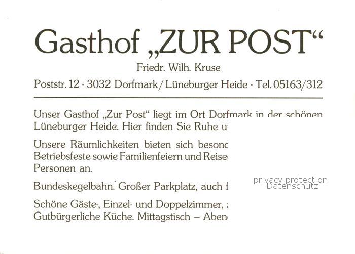 73543727 Dorfmark Gasthof Zur Post Lueneburger Heide postalisch nicht gelaufen Werbekarte (keine Postkarte) Erhaltung siehe scans [FriedD77] KatCode: 11110003358008