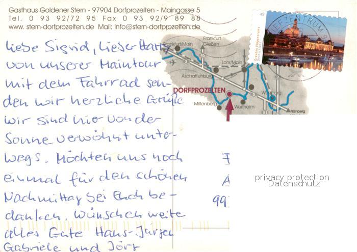 73646157 alte Postkarte Dorfprozelten Gasthaus Goldener Stern Festtafel Gaststube Weiher Park Zimmer postalisch gelaufen Erhaltung siehe scans [WerneD78] KatCode: 11110009676118