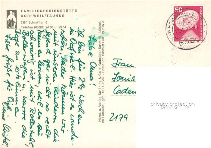 73618212 alte Postkarte Dorfweil Taunus Familienferienstaette Fliegeraufnahme postalisch gelaufen Erhaltung siehe scans [FriedD77] KatCode: 11110006434009