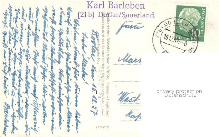 33658418 alte Postkarte Dorlar Sauerland Karl Barleben Fliegeraufnahme postalisch gelaufen Erhaltung siehe scans [WerneD78] KatCode: 11110005958040