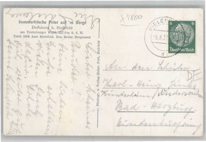 40680747 Dornberg Bielefeld Wald-Hotel Peter auf’m Berge postalisch gelaufen Alte Ansichtskarte Postkarte alte Postkarte Katcode 11110005711000