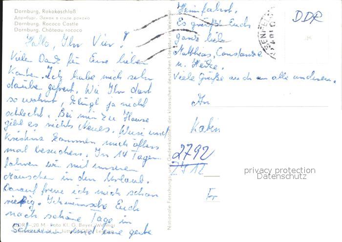 72523221 alte Postkarte Dornburg Elbe Rokokoschloss postalisch gelaufen Erhaltung siehe scans KatCode: 11110015086055