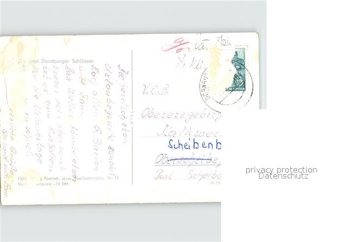 72431709 alte Postkarte Dornburg Saale Die drei Schloesser Rokoko- Alte- und Goethe Schloss postalisch gelaufen Erhaltung siehe scans KatCode: 11110016074013