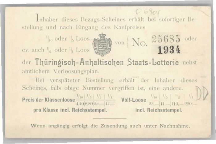 40634904 Dornburg Saale Lotterie-Gewinn KatCode 11110016074013