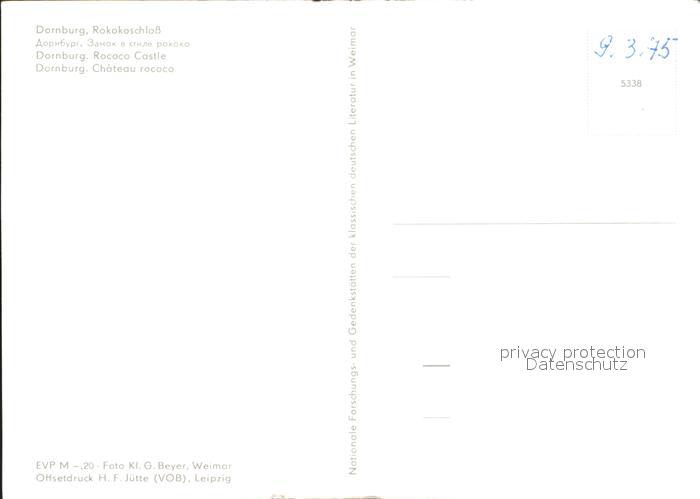 72324064 Dornburg Saale Rokokoschloss postalisch nicht gelaufen Erhaltung siehe scans KatCode: 11110016074013