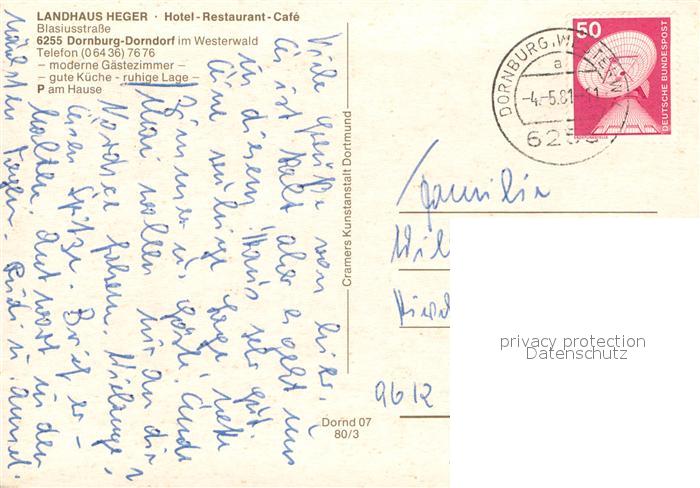 73723197 alte Postkarte Dorndorf Westerwald Landhaus Heger Hotel Restaurant Gastraeume postalisch gelaufen Erhaltung siehe scans [WerneD78] KatCode: 11110006533004